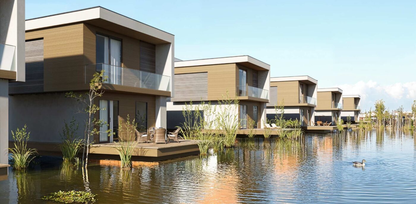 Aan het water gelegen, omgeven door natuur en voorzien van een strakke, minimalistische uitstraling: deze woningen ademen luxe en rust.